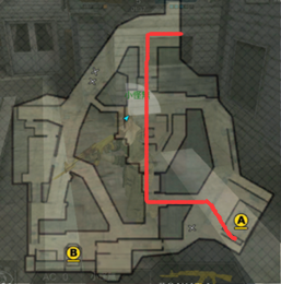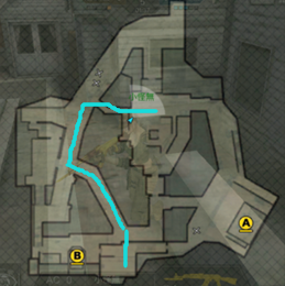 今天来介绍一下潜伏者的中路B点的突围爆破路线,先来看一下线路总览。