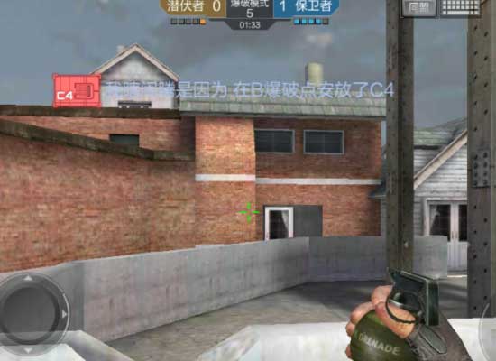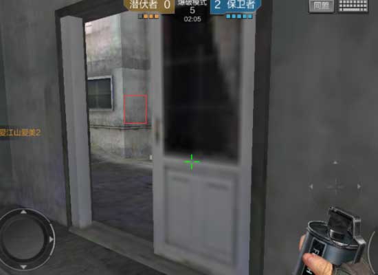 成功进入小屋之后,敌人很有可能在小屋的出口埋伏,而且可能敌人不止只有一个,所以我们在出去之前需要先丢出一颗闪光,闪光投掷的时候要对准截图中红色区域的墙面,是闪光经墙面反弹到敌人脚下,这时候你就可以冲出去了,先看正前方有没有敌人,再看门旁的两侧。